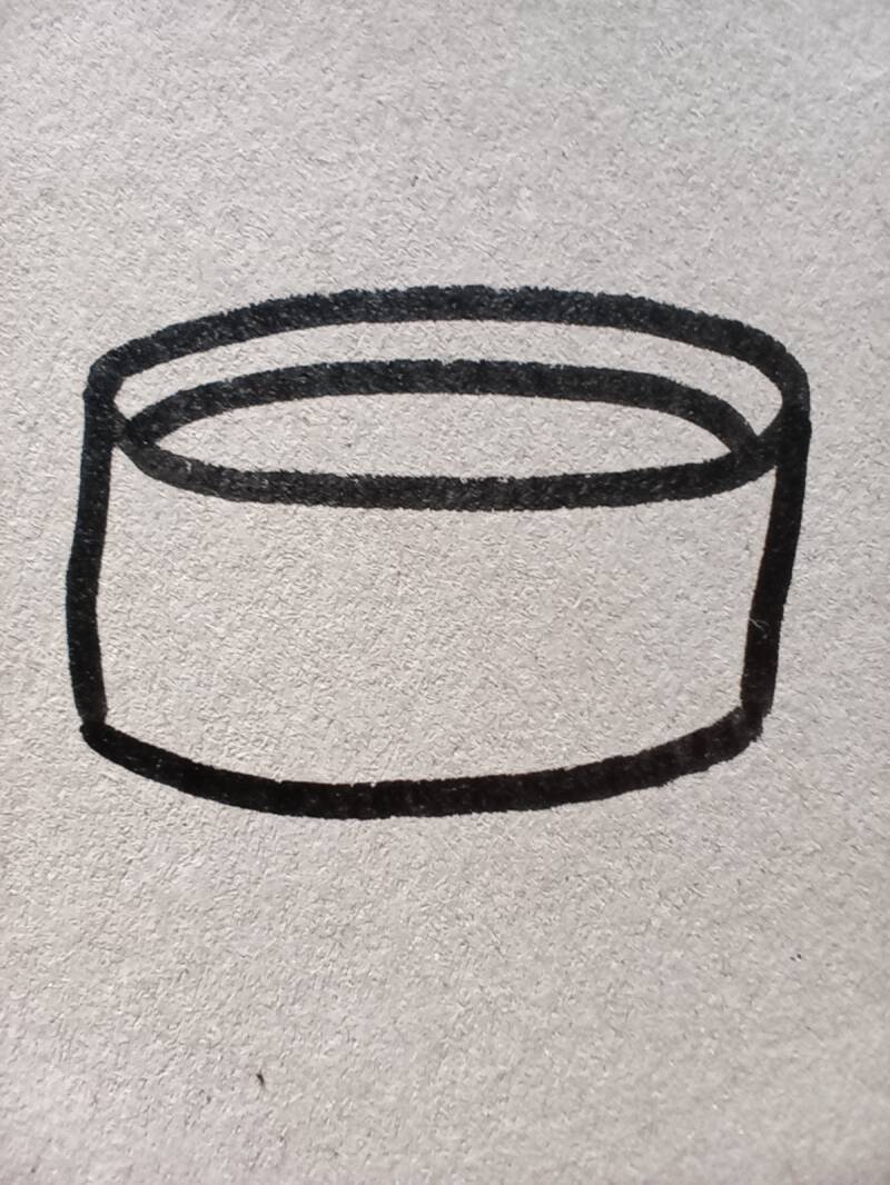 Begin met het schetsen van de basisvorm (zie hieronder) iets onder het midden van het papier. Doe voor op het bord. Trek licht om met zwart waskrijt. Zet bij het voorbeeld op het bord een pijl waar het licht vandaan komt, van rechts. Aan de rechterkant is de buitenkant van het waxinelichtje dus lichtgeel en naar links toe wordt het van grijs langzaam zwart. De binnenkant is lichtoranje door het vlammetje, het kaarsvet nog iets lichter. Speel met de kleuren, maak mooie overgangen. Onder het vlammetje maak je met wit nog een extra licht vlakje, het schijnsel van het vlammetje. De vlam zelf is middenin bijna wit en naar buiten toe wordt hij geel, dan oranje, dan rood. Trek met een schoon, licht geel of oranje krijtje aan de buitenkant lichtstralen naar buiten toe. Ik deed dat door een klein stukje krijt plat met de zijkant op het papier te leggen. De randen van het zwarte papier lijm je in met een plakstift (geen lijmflesje dus) en doop in de glitter. Probeer de rest van de tekening te vermijden. Schud het overtollige glitter af.